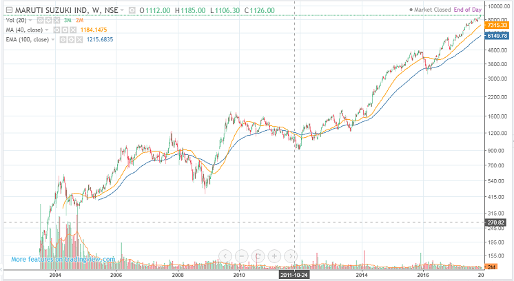 LONG TERM BUY SELL ON CHART - use 40 and 100 moving average as support / resistance for it on WEEKLY candle chart with stock price to moving average crossover and moving average crossover for entry and exit in three stages - 70 deg rise on daily chart